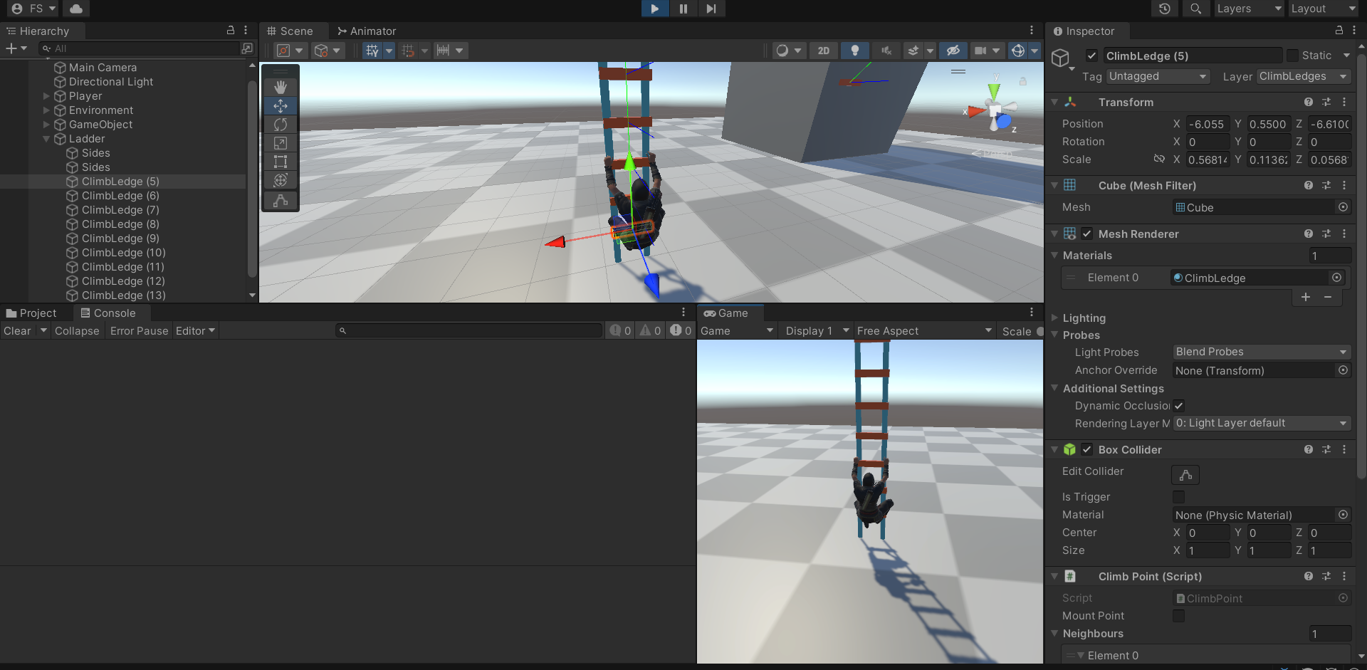 Then we create a ladder step using climb ledge prefab. Make multiple copies using Ctrl + D shortcut.